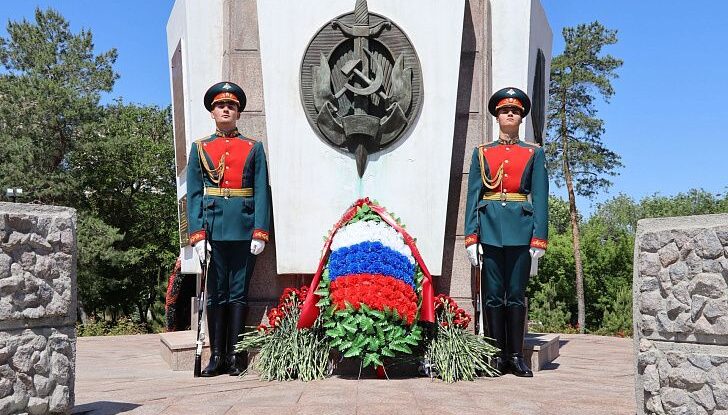После возложения собравшиеся на площади Чекистов почтили минутой молчания память воинов-пограничников, отдавших жизнь за целостность государственных границ и защищая страну в ходе специальной военной операции.